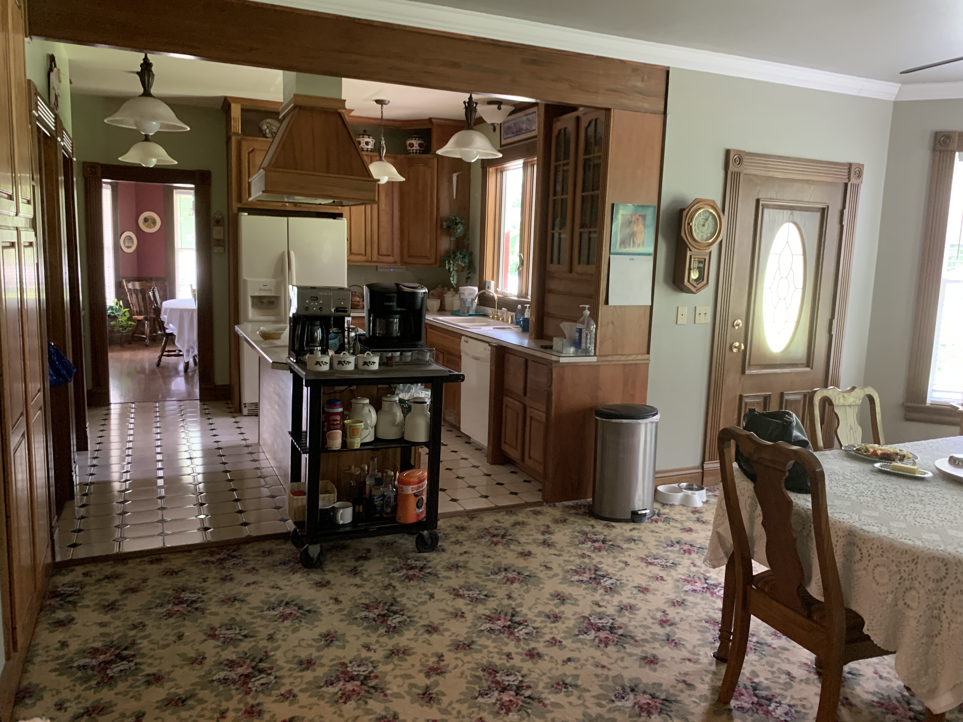 The Formal Dining RoomThe formal dining room originally had a table that would seat 12 people. Breakfast was a three-course meal with special homemade touches. Mystery dinner theaters were sometimes held with all the guests.